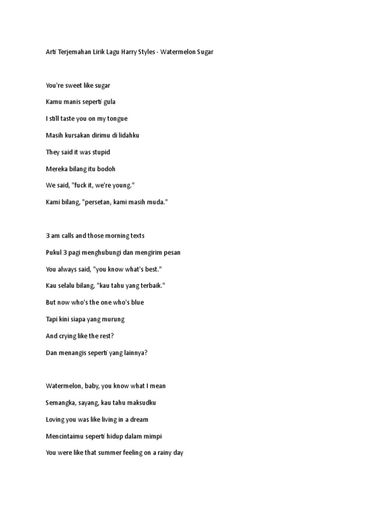 Lirik Harry Styles Watermelon Sugar Dan Terjemahan Lagu Lirikterjemahan Id