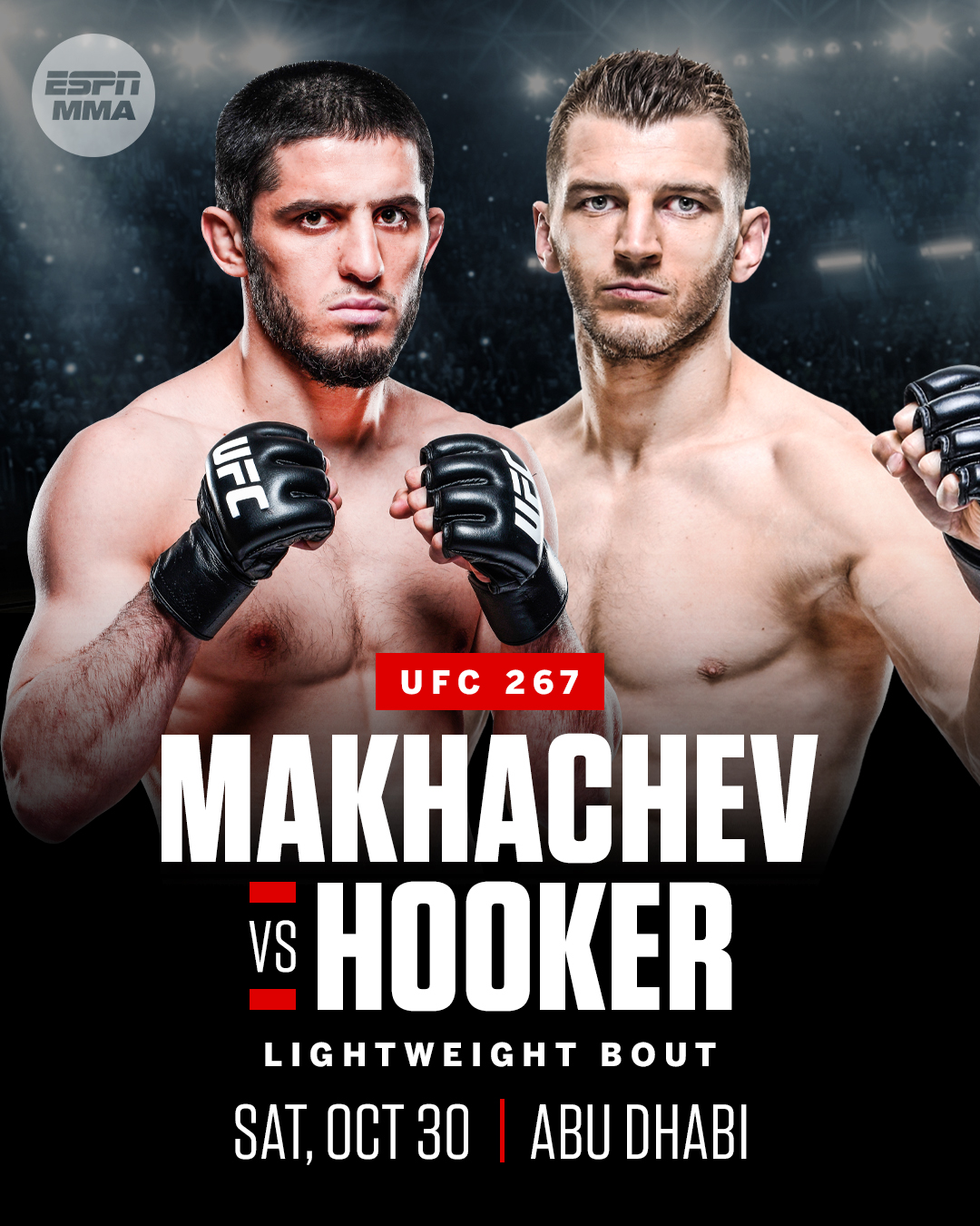 Islam Makhachev at UFC 267 on October 30 2021. Farah Hannoun Despite the quick turnaround Dan Hooker wishes his fight with Islam Makhachev was five rounds. Islam Makhachev expects title shot after UFC 267 thinks Dustin Poirier will hold belt UFC October 30 2021 830 pm ET By.